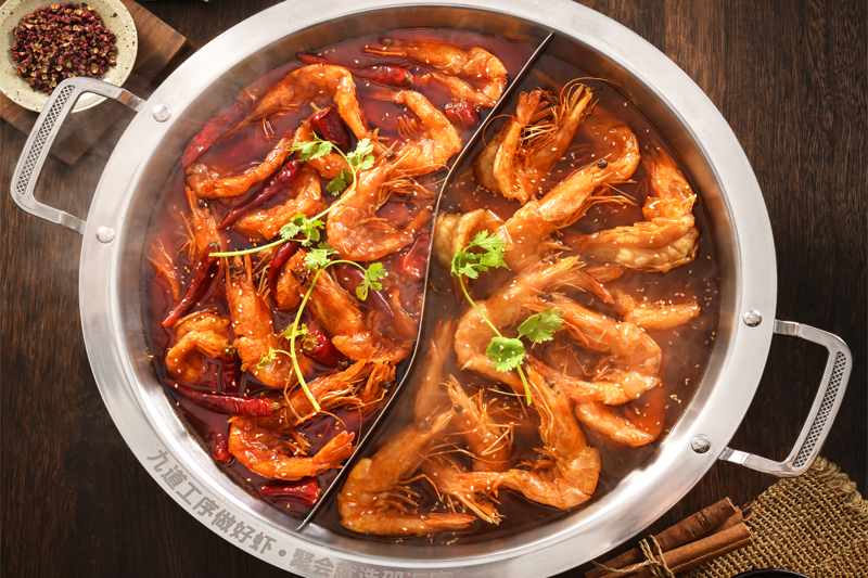 食材精選進口大蝦,搭配秘制底料制作而成,研發(fā)出一鍋兩吃的飲食模式(先吃蝦后涮菜,葷素搭配隨心選),打造出綠色健康的飲食新文化。